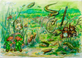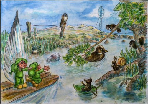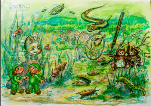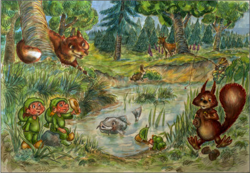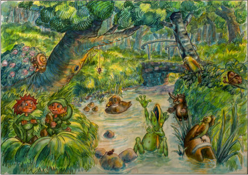 Pyt og Pot, der er gået på opdagelse i skoven,
